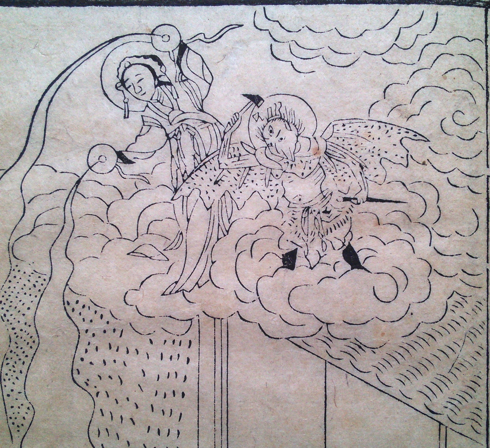 Here, again from the Illustrated Stories of Twenty Four Filial Women , 1872 edition, are the Lord of Thunder (雷公) and the Mother of Lightning (電母). They show up in illustrated morality texts quite a lot, since they’re often sent by heavenly bureaucrats to mete out punishment on sinners.