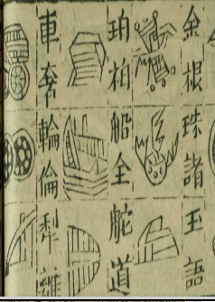 The homophone dictionary towards the end is fascinating because it’s not giving homophones in modern Mandarin. The book itself has no location given for its publication, but I bet someone well versed in varieties of Chinese languages could tell us where it’s from. Most characters do rhyme in Mandarin, but see below for a few that don’t. Any guesses as to what language these represent?