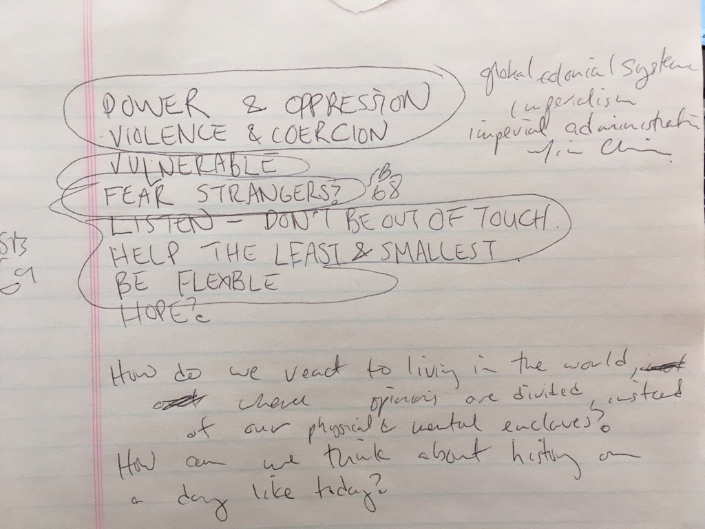 Thanks to a friend on twitter, I’d read and reread “Teaching in Times of Crisis.” My lectures before the election had focused on issues I believe to be important in world and US history. If my early morning email hadn’t already convinced me that this was a day for teaching, that page would have sealed it.